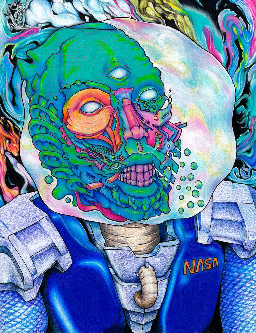 Observe the astronaut as he ascends into a higher dimension through the way of a wormhole.